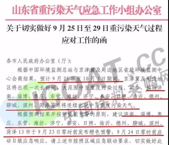 淄博:9月23日0時0分發布重污染天氣橙色預警,9月24日0時0分啟動II級應急響應。