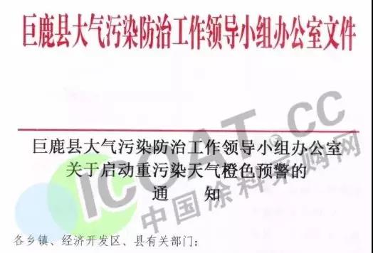 邢臺:自2019年9月23日0時至10月3日0時啟動重污染天氣橙色預警,實施Ⅱ級應急響應措施,工業企業執行紅色減排措施。除應急搶險外,施工工地應禁止噴涂粉刷、護坡噴漿等。倡導公眾綠色消費,單位和公眾盡量減少含揮發性有機物的涂料、油漆、溶劑等原材料及產品的使用。施工工地、工業企業廠區和工業園區內禁止使用國二及以下非道路移動機械。 邢臺巨鹿:自2019年9月23日0時至10月3日0時啟動重污染天氣橙色預警,實施II級應急響應措施,工業企業執行紅色減排措施。除應急搶險外,施工工地應禁止噴涂粉刷、護坡噴漿等。倡導公眾綠色消費,單位和公眾盡量減少含揮發性有機物的涂料、油漆、溶劑等原材料及產品的使用。