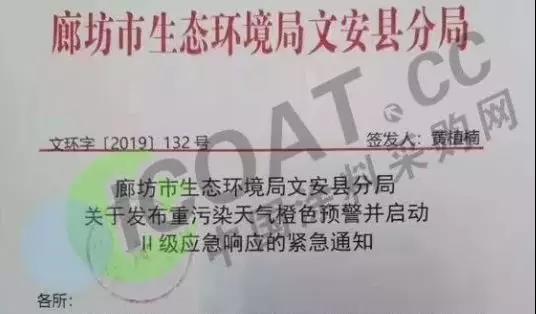 廊坊:自2019年9月24日0時起發布重污染天氣橙色預警并啟動Ⅱ級應急響應,預警解除時間另行通知。