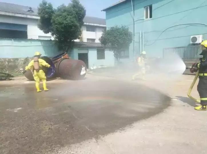在檢查寧宏日用化工廠后,縣應急管理局聯合縣消防救援大隊開展節前針對性應急救援演練。