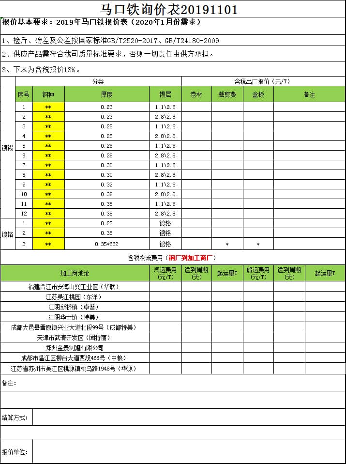 注意事項:煩請有意向投標的供應商于2019年11月4日17:30分前