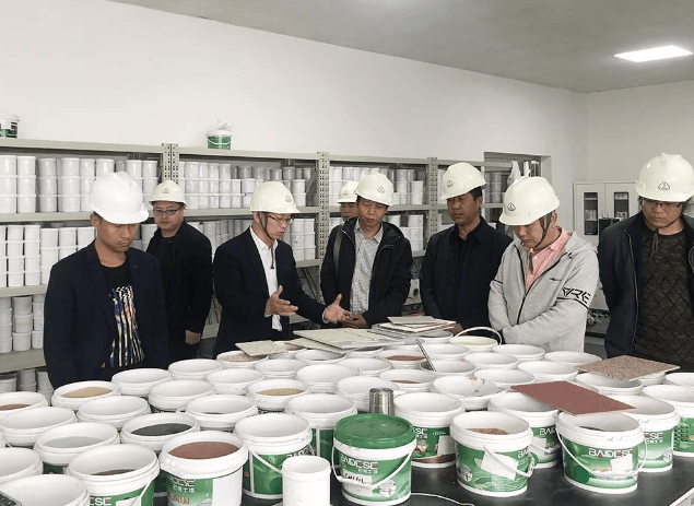 黃陵縣城投公司考察團作為成都巴德士的重要貴賓,方總充分發揮主人翁精神,并帶領考察團一行參觀了巴德士展廳。作為本次考察重點關注的外墻工程漆,其色彩穩定、高端質感等特點深受來賓們的關注,通過細致觀摩各種類型外墻涂料的樣板,雙方對仿真度極高的真石漆、多彩漆作深入的交流了解。