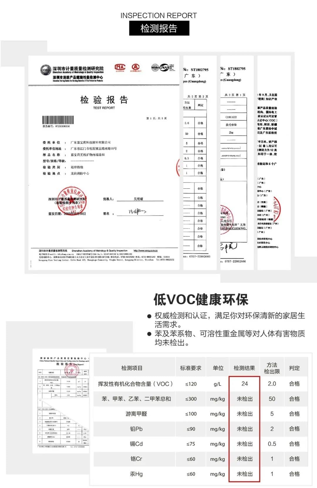 嘉寶莉多年來致力于綠色環(huán)保涂料的潛心研發(fā),從主導及參與63項國家或行業(yè)標準的起草,到擁有186個國家專利授權,使嘉寶莉集團旗下產(chǎn)品長期保持涂料行業(yè)領先水平。此次推出的嘉寶莉無機礦物內(nèi)墻涂料,榮獲中國環(huán)境標志十環(huán)認證,不僅在產(chǎn)品源頭上保證產(chǎn)品的質量,在涂刷的過程中,也最大限度的減少產(chǎn)品對環(huán)境的危害程度,保證消費者的居家環(huán)境健康。嘉寶莉無機礦物內(nèi)墻涂料基料本身無毒,無VOC的危害問題,在火焰或高溫的作用下不易燃燒,也不會向大氣釋放出有害物質,非常適合過敏體質人群、公共建設、醫(yī)療領域等場所使用。