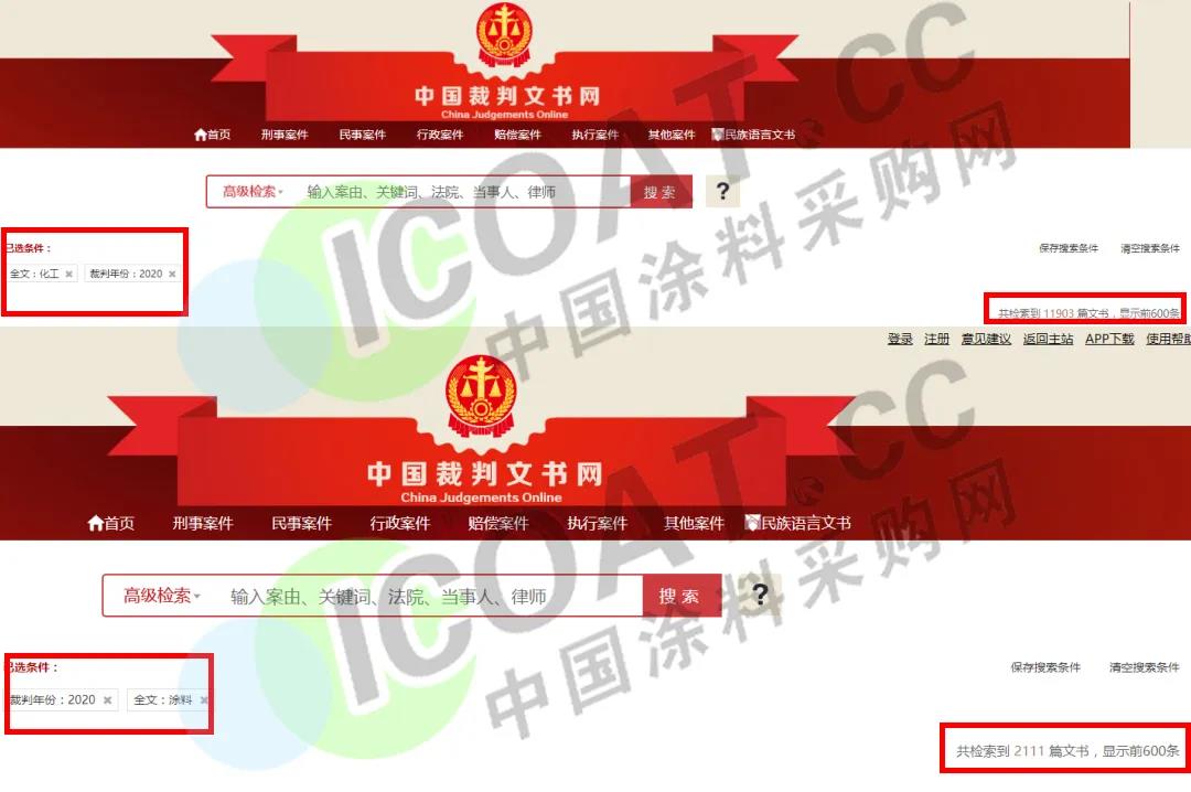 據涂料采購網了解,近年來,涂料、化工行業有不少企業陷入了各種糾紛當中。這其中不乏一些買賣雙方由于資金不到位、未履行合約等造成的合同糾紛,也有企業自身生產、銷售、售后等過程中出現的違法違規行為,被檢察院、銀行等相關機構予以起訴,導致官司纏身,僅2020年就有上萬家涂料、化工企業卷入其中。