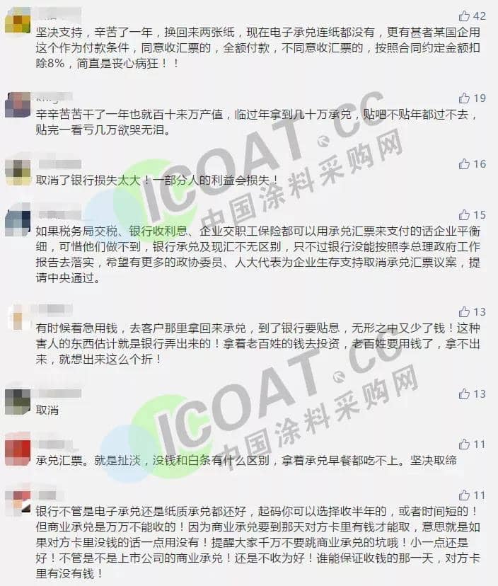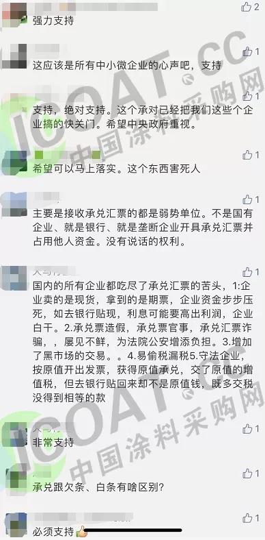 某噴涂企業負責人表示:很多企業即使收電子匯票也是要提前貼現兌換,如果是商業匯票則更要面臨無法承兌的風險,非常不利于企業的正常發展,支持取消承兌匯票。
