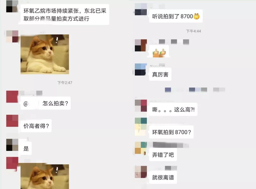 6月初,環(huán)氧乙烷價(jià)格由5800元/噸飆升至7000元/噸,漲幅超過20%。而近期某化工群里則出現(xiàn)了東北地區(qū)部分環(huán)氧乙烷產(chǎn)品進(jìn)行拍賣的情況,拍賣出8700元/噸的高價(jià),令一眾化工人深感不可思議。