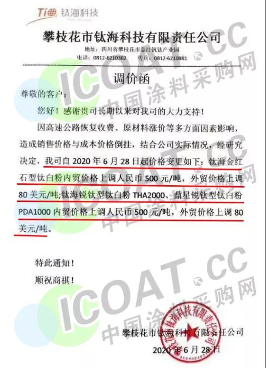 這個(gè)漲價(jià)函的出現(xiàn)似乎很突兀,讓人有些匪夷所思,鈦白粉從今年4月開始,就一直跌跌不休,突然市場出現(xiàn)了 “漲價(jià)函”,不禁讓業(yè)內(nèi)突生疑惑,是市場回暖了?還是市場炒作行為?
