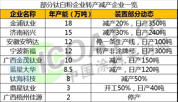 多家鈦白粉企業(yè)開啟減產(chǎn)模式