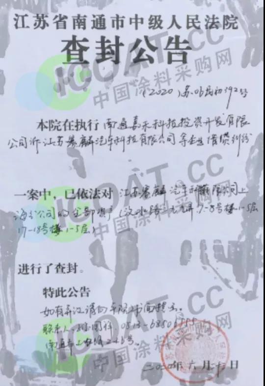 另據涂料采購網了解,早在6月23日,江蘇省南通市中級人民法院就查封了江蘇賽麟汽車科技有限公司上海分公司的全部資產。
