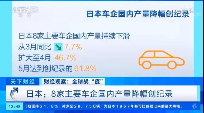 6月29日,日本車企發布數據,8家主要車企5月國內產量較去年同期猛降61.8%,減少至28.75萬輛,為日本1967年有可比數據以來的最大降幅。新冠疫情影響,日本工廠相繼停工或調整生產。