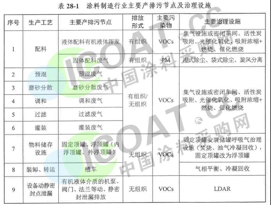 (2)VOCs:主要來自配料、預(yù)混、磨砂分散、調(diào)和、過濾、灌裝、物料儲存設(shè)施、裝卸、轉(zhuǎn)運、設(shè)備動靜密封點泄漏等工序。