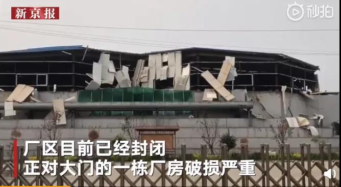 監控畫面顯示,爆炸發生時,半邊天空被照亮。經涂料采購網了解,該污水處理廠及周邊部分廠房、居民住房玻璃被震碎,廠區目前已經封閉,正對大門的一棟廠房破損嚴重,相鄰工廠工人宿舍的彩鋼板墻壁被炸飛。