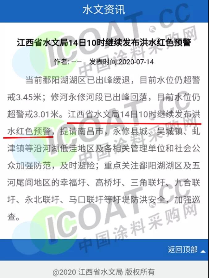 江西省水文局2020年7月12日12時44分繼續發布洪水紅色預警。