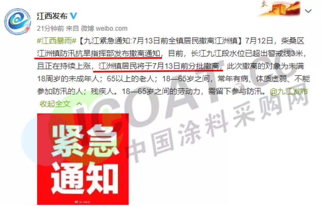 江西九江發布緊急通知,要求江洲鎮居民13日前分批撤離。(18-65歲之間的勞動力,需留下參與防汛)。