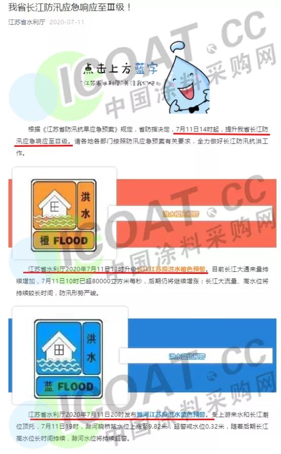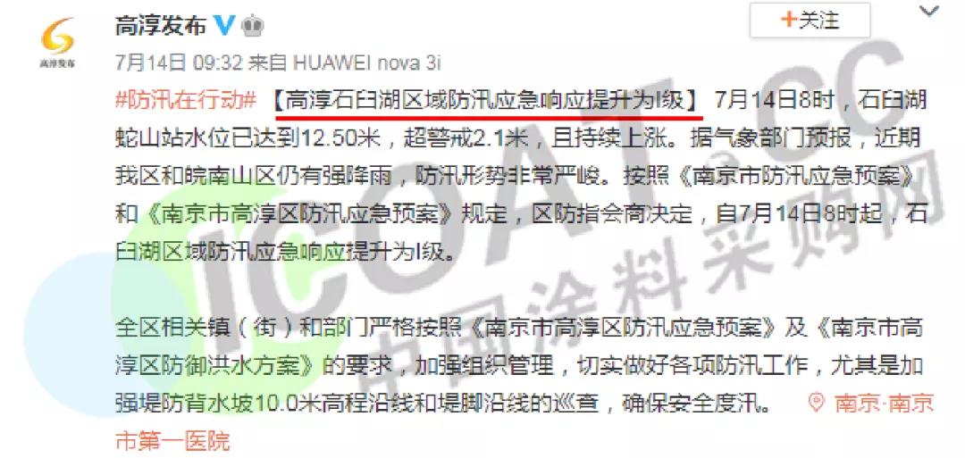 7月11日14時起,提升江蘇省長江防汛應急響應至Ⅲ級。江蘇省南京市高淳區啟動防汛Ⅰ級應急響應。