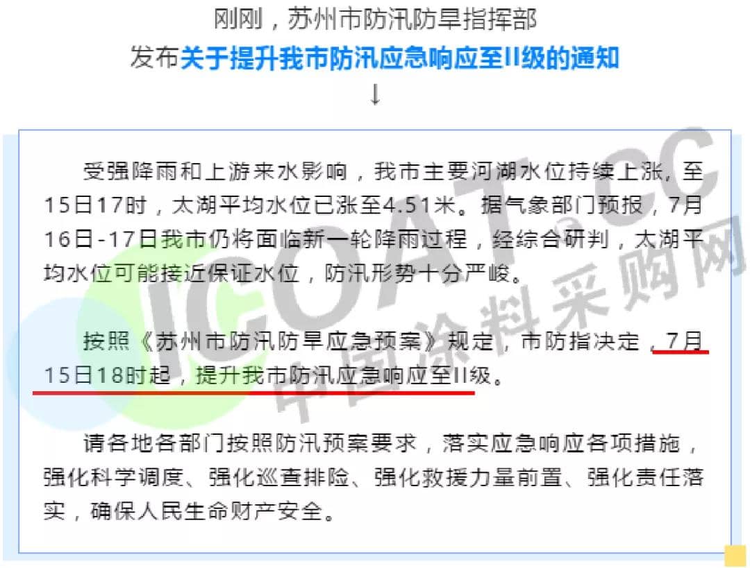 15日18時起,蘇州提升防汛應急響應至II級。