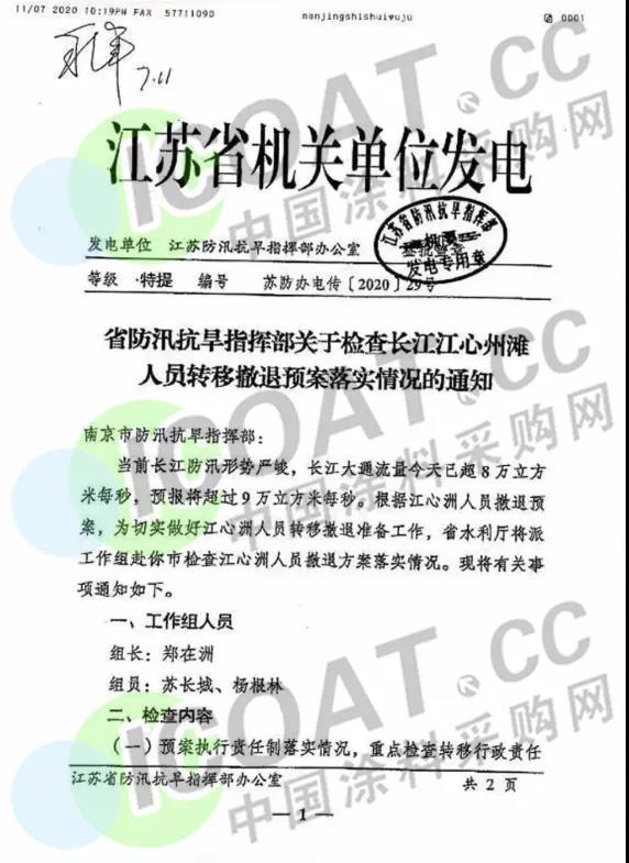 同時,江蘇省防汛抗旱指揮部辦公室發布通知,要求江心洲人員按照撤退預案轉移撤退。