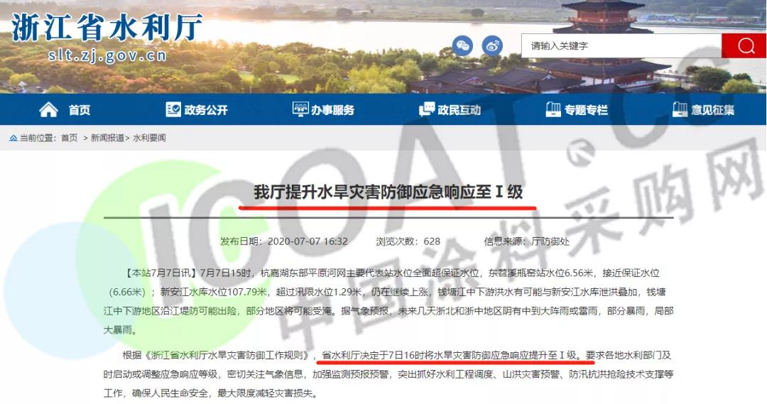 根據《浙江省水利廳水旱災害防御工作規則》,浙江省水利廳決定于7日16時將水旱災害防御應急響應提升至Ⅰ級。請各地水利部門及時啟動或調整應急響應等級,密切關注氣象信息,加強監測預報預警,突出抓好水利工程調度、山洪災害預警、防汛抗洪搶險技術支撐等工作,確保人民生命安全,最大限度減輕災害損失。