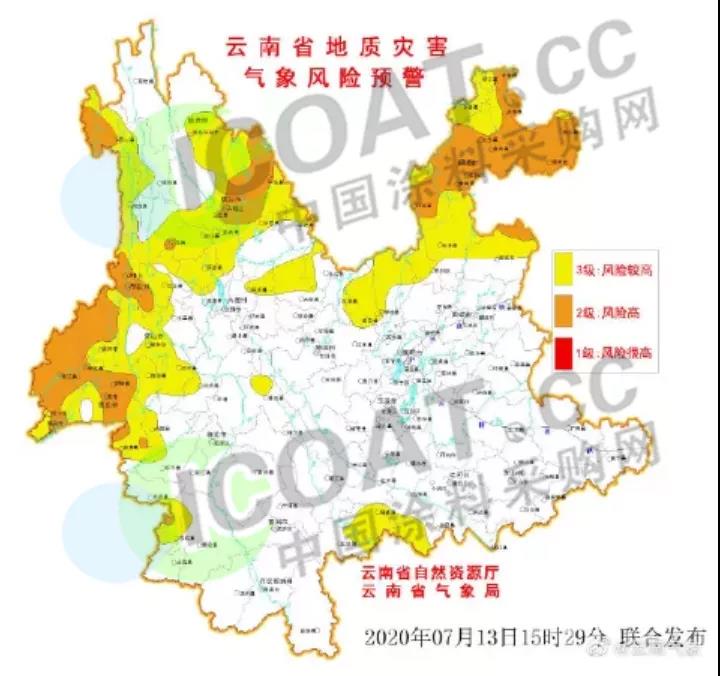7月13日16時30分繼續聯合發布地質災害氣象風險Ⅱ級預警。