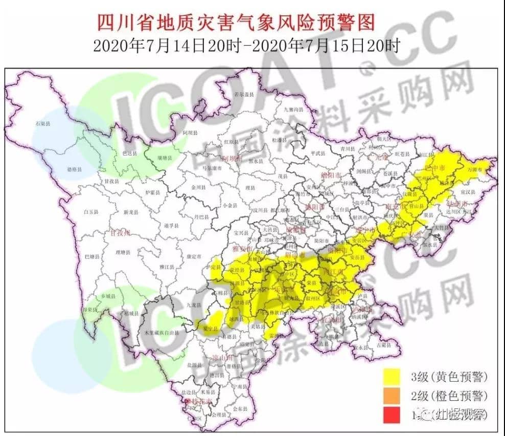 7月14日20時~7月15日20時,全省共有15市州進入黃色預警范圍。