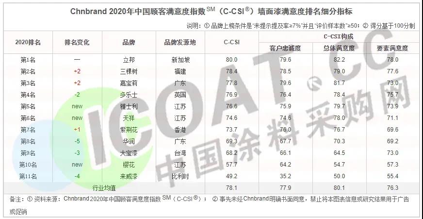 立邦、多樂(lè)士等涂料品牌客戶(hù)滿(mǎn)意度逐年提升