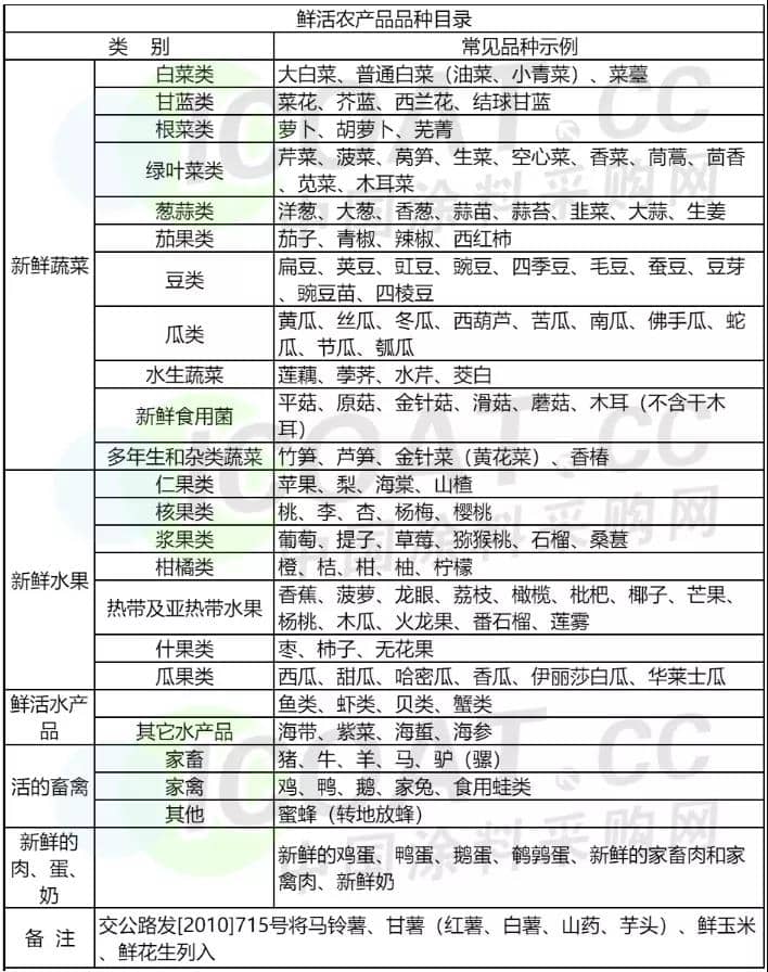 針對于鮮活農產品運輸車輛費通行的問題,涂料采購網致電交通運輸部公路局,據相關負責人介紹,《關于進一步做好高速公路車輛通行費優惠預約通行服務工作的通知》中提到的鮮活農產品運輸車輛,必須是運輸鮮活農產品品種目錄(如下圖)中產品的車輛,整車合法就可以申請免費。