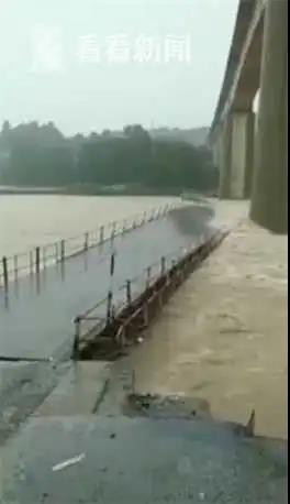 湖南多地普降暴雨,位于張家界的澧水水位陡漲,澧水永定段200多米的臨時施工便橋被沖毀。