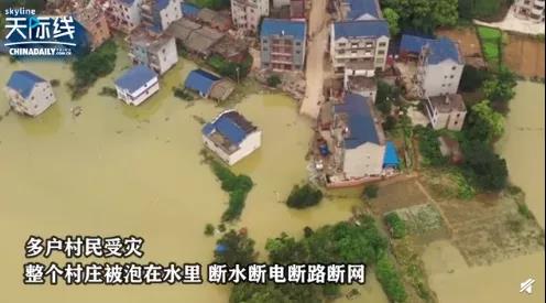 江西鄱陽縣蓮湖鄉(xiāng)龍口村,該村三分之二區(qū)域被淹,多戶村民受災(zāi)。目前,整個村莊被泡在水里,斷水?dāng)嚯姅嗦窋嗑W(wǎng),村民只能坐船通往外界。