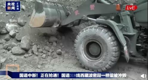 國道318線西藏林芝市波密縣雪瓦卡村路段的達(dá)打橋,被泥石流沖毀,交通中斷。