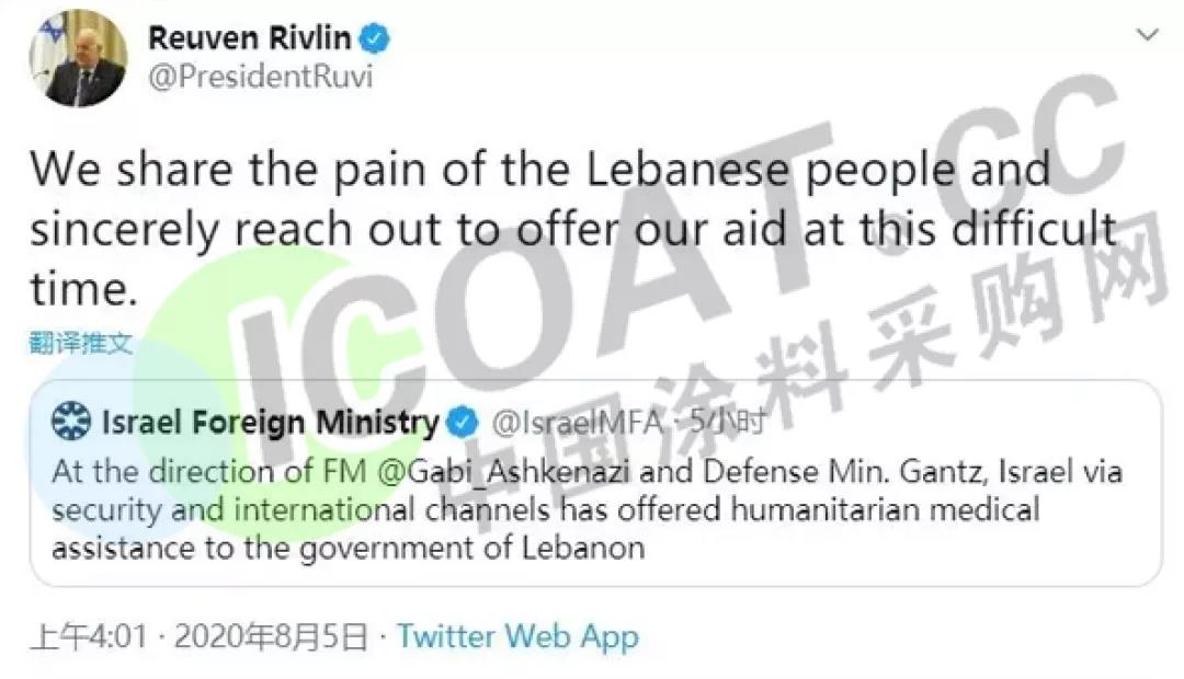 伊朗外長扎里夫表示,伊朗隨時準備為黎巴嫩提供任何必要援助。扎里夫在推特上寫道:“我們的思緒與祈禱同偉大且堅韌的黎巴嫩人民同在。”扎里夫還稱,“一如既往,伊朗已做好充分準備,以任何必要方式提供援助。保持堅強,黎巴嫩。”