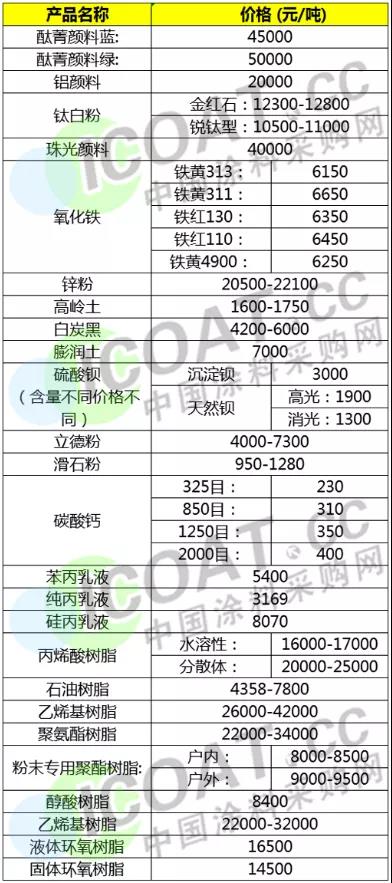 (以上數(shù)據(jù)來源于涂料采購?fù)ù髷?shù)據(jù),如有差池,請以實(shí)際為準(zhǔn)!)