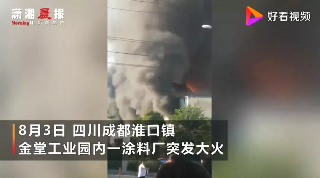 8月3日,四川成都淮口鎮(zhèn)金堂工業(yè)園內(nèi)一涂料廠突發(fā)大火。現(xiàn)場火光沖天,數(shù)公里外能見煙柱。