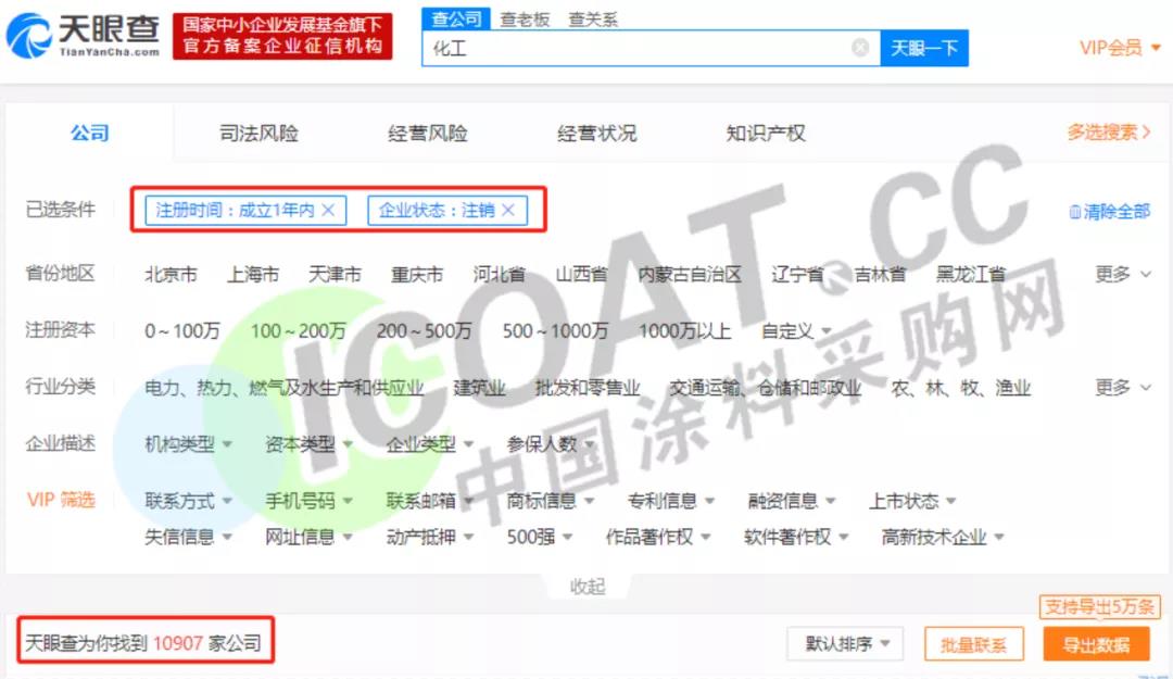 據涂料采購網了解,僅2020年新成立并注銷的涂料化工企業就超過上萬家,如果累計來看的話數量更加驚人,系統顯示出了超過10萬家企業注銷的數據,而10萬以外的注銷數據,我們無從得知。