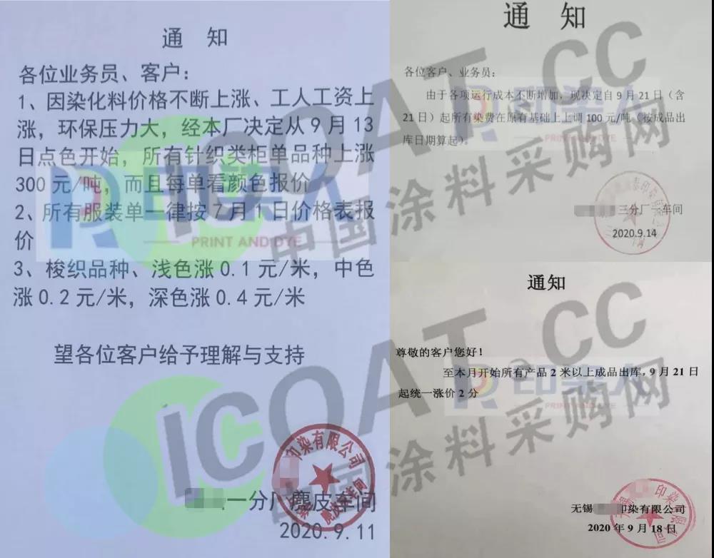 9月以來,印染行業(yè)上游,染料供應(yīng)商傳出染料價格進行上漲調(diào)整。從分散染料到活性染料,大有一番上漲趨勢。染費在原有基礎(chǔ)上上調(diào)100元/噸;針織類柜單品種上漲300元/噸。