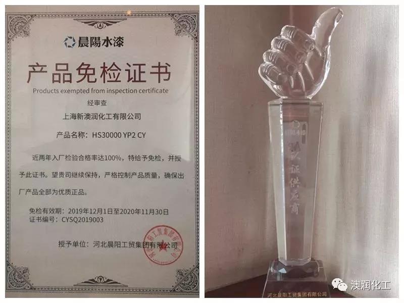 澳潤化工:澳潤化工是國內無機涂料行業的領軍者和優質服務商,澳潤化工是晨陽集團2019年度“ 十大認證供應商”,其自2014年開始與晨陽合作,并于2016年與晨陽集團的合作關系定位為了戰略型合作伙伴。