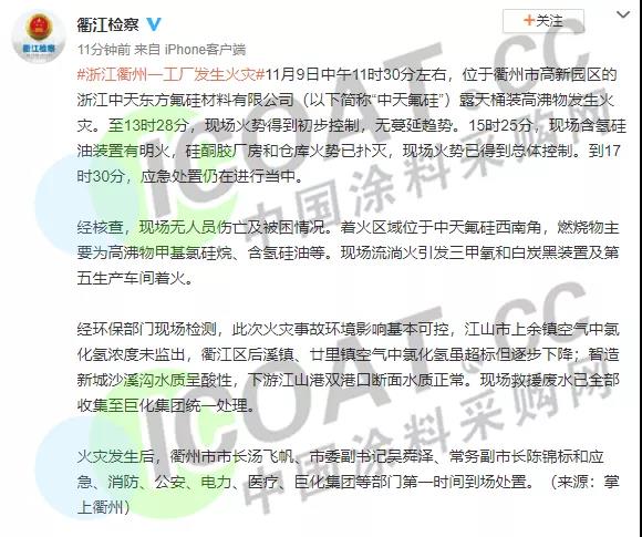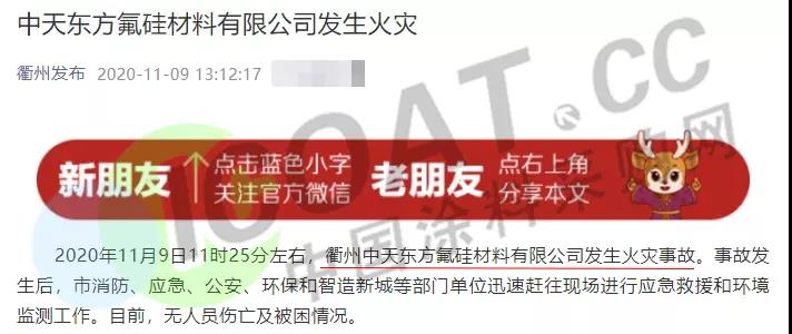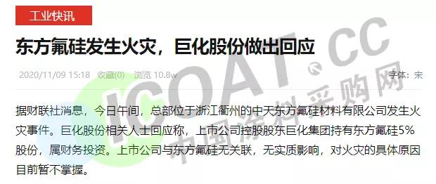 事故發生后,巨化股份相關人士回應稱,上市公司控股股東巨化集團持有東方氟硅5%股份,屬財務投資。上市公司與東方氟硅無關聯,無實質影響,對火災的具體原因目前暫不掌握。