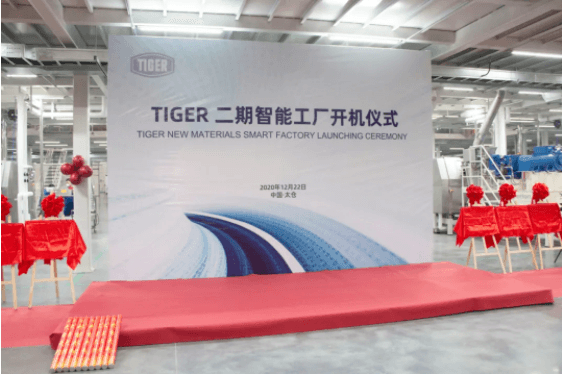 TIGER二期擴建項目于2019年11月正式啟動,致力于打造行業(yè)符合工業(yè)4.0標準的“智能化科技工廠”。項目總投資約1.5億元,新建廠房12000平方米,可擴充產(chǎn)能至30000噸/年。本項目擴建于老虎公司2008年取得的土地場地,項目結(jié)構(gòu)封頂時間為2020年6月,本月項目完成驗收,并于今天2020年12月22日正式舉行開機儀式。