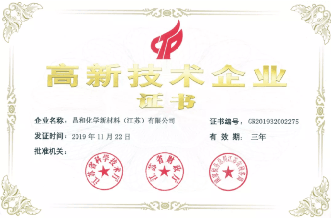 成立30余年來(lái),昌和化學(xué)十分注重創(chuàng)新研發(fā),堅(jiān)持走科技型道路。2017年通過(guò)環(huán)境和質(zhì)量體系論證,獲得3個(gè)發(fā)明專利,11個(gè)實(shí)用新型專利,體現(xiàn)出了在知識(shí)產(chǎn)權(quán)領(lǐng)域不懈前進(jìn)的精神。在昌和人的不斷奮進(jìn)、砥礪前行之下,昌和化學(xué)已被評(píng)為市級(jí)綠色工廠,并成為國(guó)家高新技術(shù)企業(yè)。
