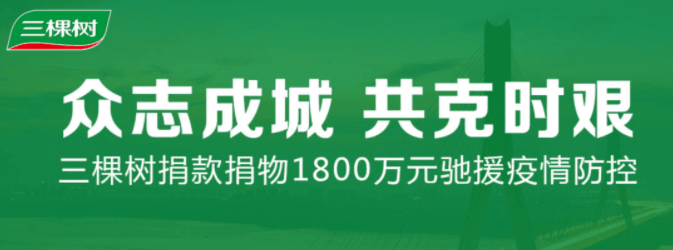 為支持抗擊疫情,三棵樹迅速啟動(dòng)緊急決策程序,第一時(shí)間向福建省光彩事業(yè)促進(jìn)會(huì)、河南省南召縣財(cái)政局、湖北省孝感應(yīng)城市東馬坊街道捐贈(zèng)資金。疫情防控期間,三棵樹累計(jì)捐資捐物達(dá)1800多萬元。