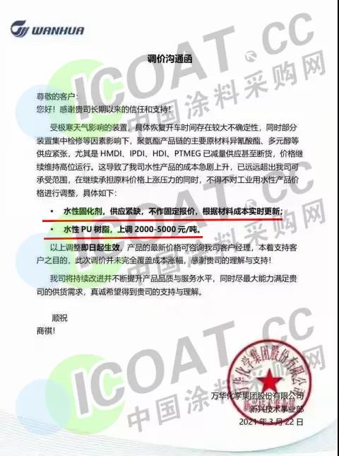 萬華化學:水性PU樹脂,上調2000-5000元/噸。