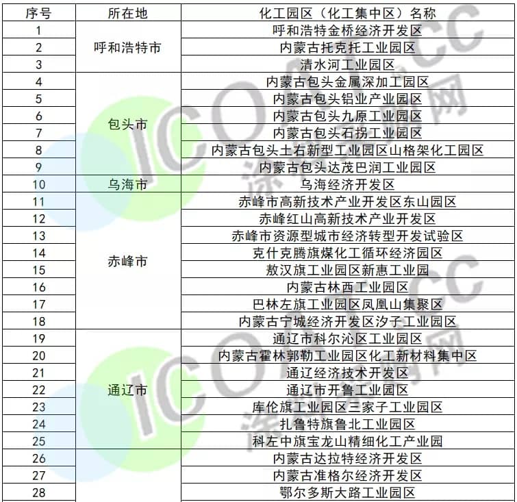 內(nèi)蒙古自治區(qū)58個化工園區(qū)