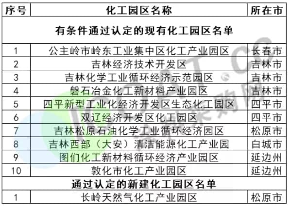 吉林省人民政府辦公廳印發(fā)《吉林省化工園區(qū)認定管理辦法(試行) 》,并且化工園區(qū)認定結(jié)果已完成公示,其中,有條件通過認定的現(xiàn)有化工園區(qū)10家,通過認定的新建化工園區(qū)1家,未通過認定的現(xiàn)有化工園區(qū)9家。化工園區(qū)數(shù)量較此前增加6個。