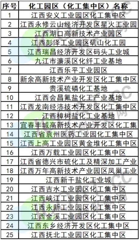 江西省工業(yè)和信息化廳、江西省發(fā)展改革委、江西省應(yīng)急廳、江西省生態(tài)環(huán)境廳、江西省自然資源廳聯(lián)合發(fā)布了化工園區(qū)名單(第一批)公示名單,共25家。另外,在2020年10月,江西省政府專門批準了成立了九江石化產(chǎn)業(yè)園。至此,江西一共有26家化工園區(qū)通過認定。化工園區(qū)數(shù)量較此前增加15個。