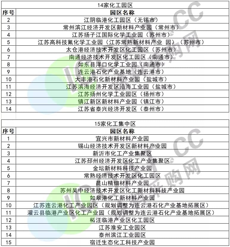 江蘇14家化工園區(qū)+15家化工集中區(qū)