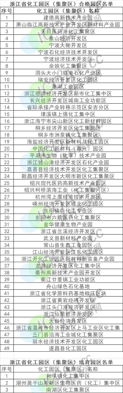 浙江49家化工園區(qū)+3家培育園區(qū)