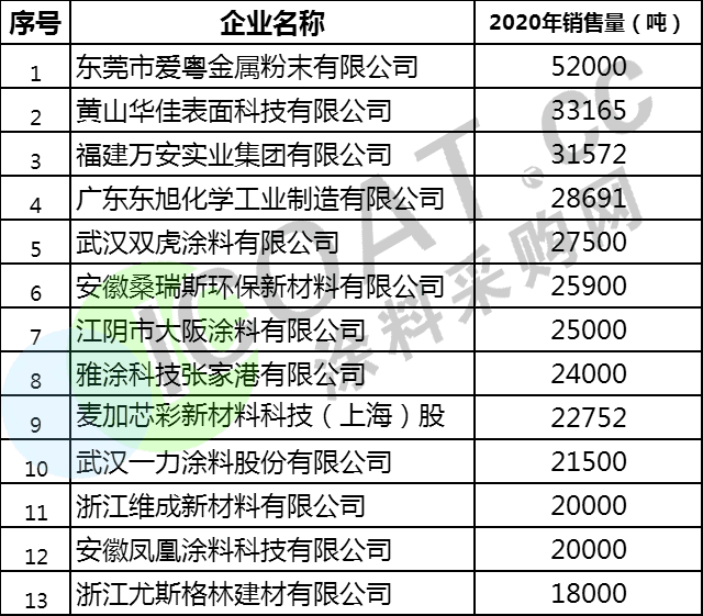 備注:以上數據來源于涂料采購網信息中心,如有差池,請以實際銷量為準!