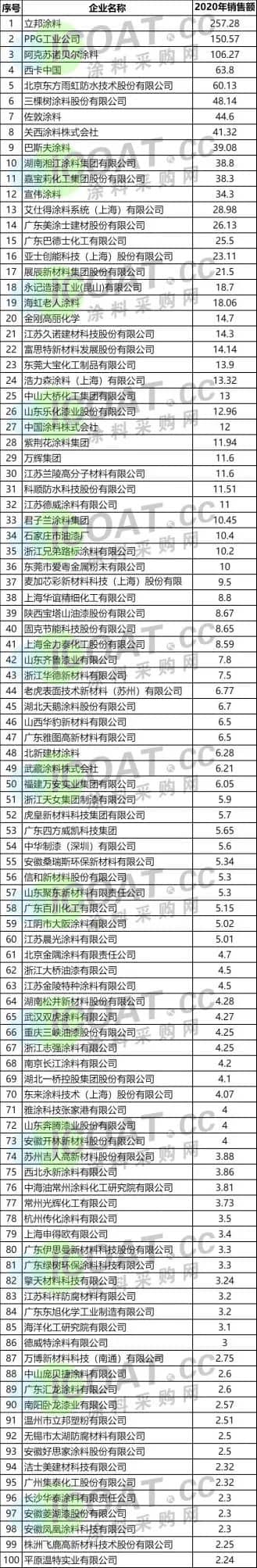 據涂料采購網不完全統計,2020年中國涂料銷售量前100家企業的總銷量為1632萬噸,較2019年涂料銷售量100強企業的總銷量增長11.8%。在疫情的重大影響之下,涂料百強企業能夠做到逆勢增長,實屬不易,這與國內新基建項目拉動有很大的關系。