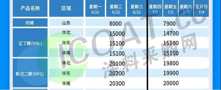 7月1日,固體環氧樹脂報價25000元/噸左右,較月初下調2000元/噸左右,較年內最高值下調12000元/噸,跌幅32%。液體環氧樹脂報價26000元/噸左右,較月初下調4000元/噸左右,較年內最高值下調14500元/噸,跌幅36%,跌幅不可謂不驚人。涂料采購網與業內人士溝通獲悉,目前環氧樹脂屬于“理性回調”階段。原料方面,兩大主要原材料價格總體處于中低位。雙酚A報價20340元/噸左右,端午節后雙酚A一改前期走勢,連續兩周下跌7.87%。即便是如此,雙酚A目前利潤依然是環氧樹脂產業鏈中最高的,相對其13000元/噸左右的成本來說,16000元/噸左右的報價應該是最合理的,目前距離合理價位仍有一定的走低空間。環氧氯丙烷報價12800元/噸,目前受到各地限運影響價位較穩固。預計未來幾天影響減弱,運輸恢復正常,價格還有下跌空間,且預計明年環氧氯丙烷將有新產能投產,供應端緊缺形勢緩和也會促進價格下調。