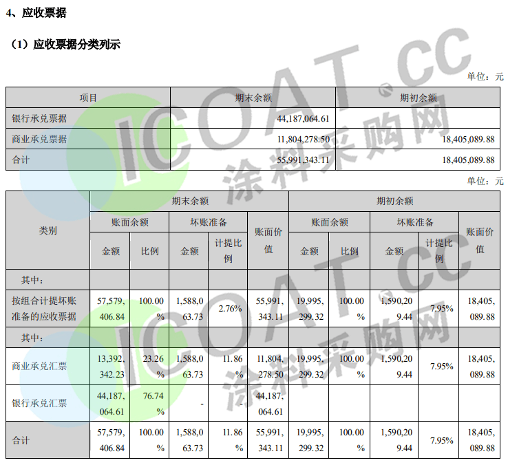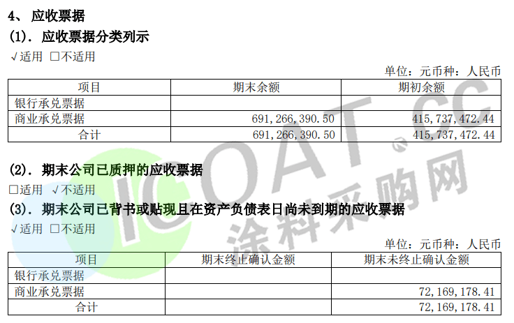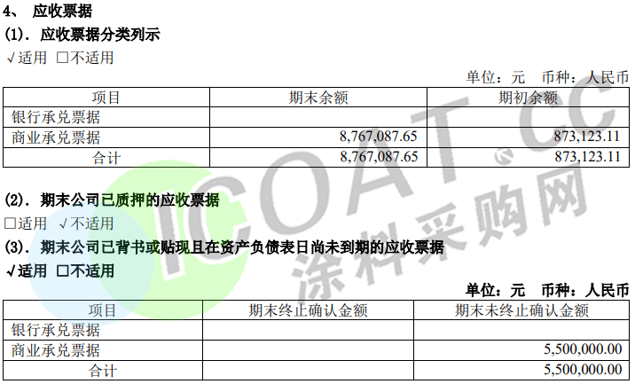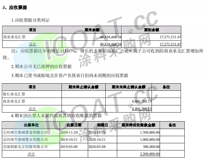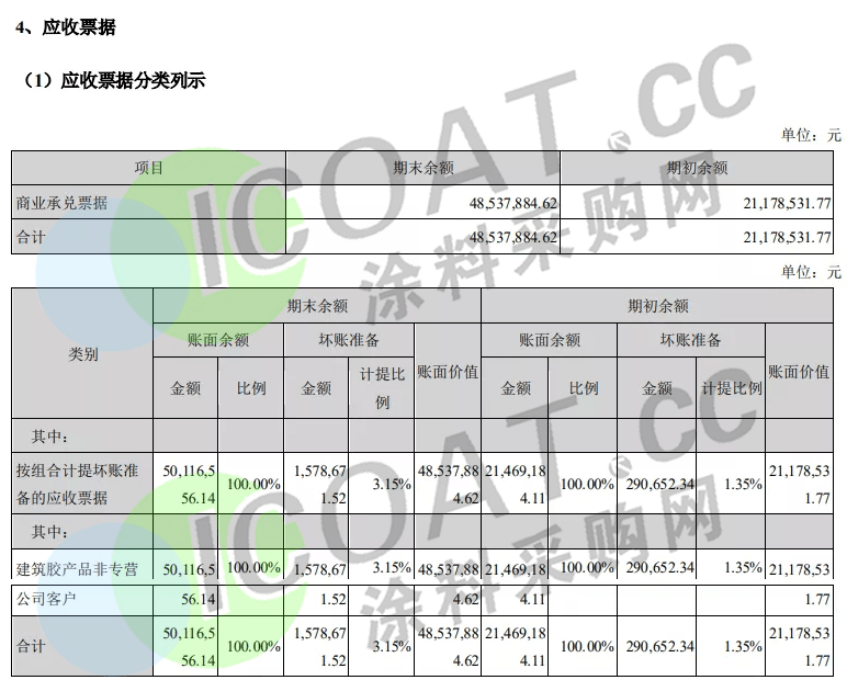 據涂料采購網了解,這種情況在涂料、原材料等化工產業鏈企業身上并不鮮見。多家涂料行業上市公司財報中公布的應收票據數額均較大。部分企業已將這部分票據計提壞賬準備,或轉入應收賬款。