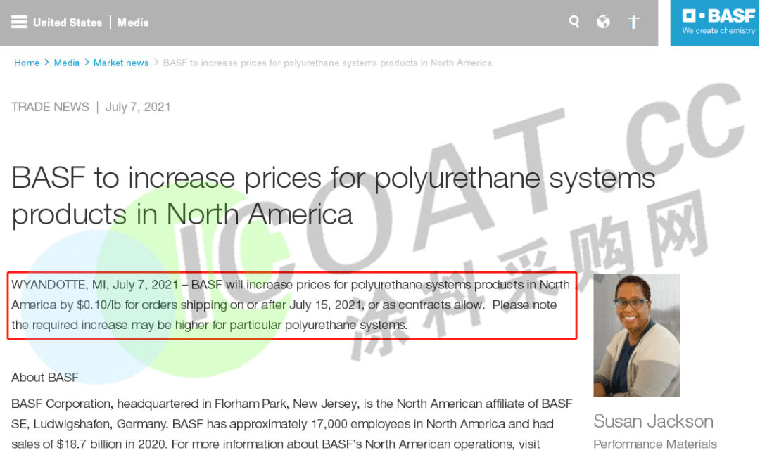 關西涂料株式會社:8月1日起,工業用涂料類上調15-25%,固化劑30-40%,稀釋劑15-20%;通用(建筑、防蝕、汽車維修)涂料類上調10-20%,稀釋劑上調15-20%;運費上調10%-15%。